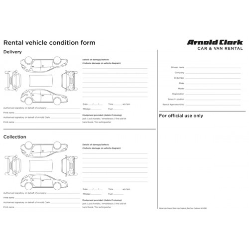HD86 RENTAL VEHICLE CONDITION FORM A4 NCR SETS