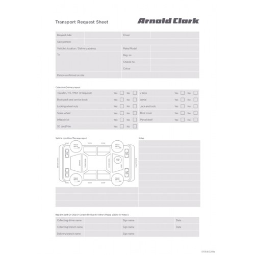 G289A TRANSPORT REQUEST SHEET PADS